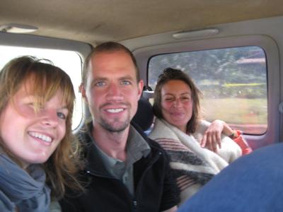 Mit Matthias und Marie im Taxi zurueck nach Santa Cruz