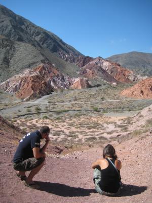 Von Sucre bin ich mit einem Nachtbus 12 Stunden an die argentinische Grenze gefahren. Nach 1 Stunde warten bis zur Grenzoeffnung, rueber laufen und nochmals einer Stunde warten konnte ich den Bus von Quiaca nach Tilcara nehmen, einem kleinen Dorf im Norden Argentiniens. 3h Busfahrt und eine Reifenpanne (+1h ) spaeter hatte ich es endlich geschafft. In Tilcara habe ich dann im Hostel 2 Franzosen kennengelernt, die sich ein Auto gemietet haben und mit denen ich eine kleine Tour durch die Quebrada du Humahuaca gemacht habe.
